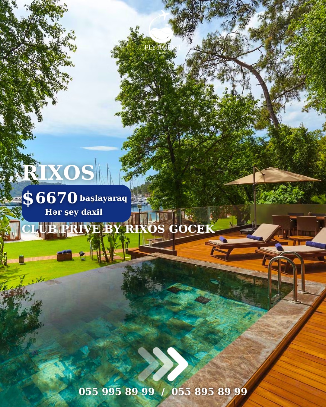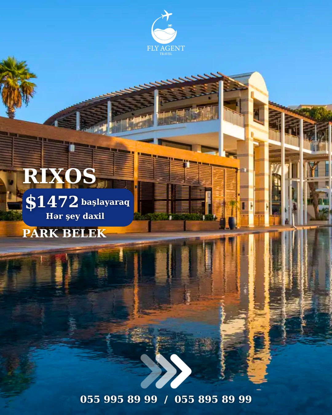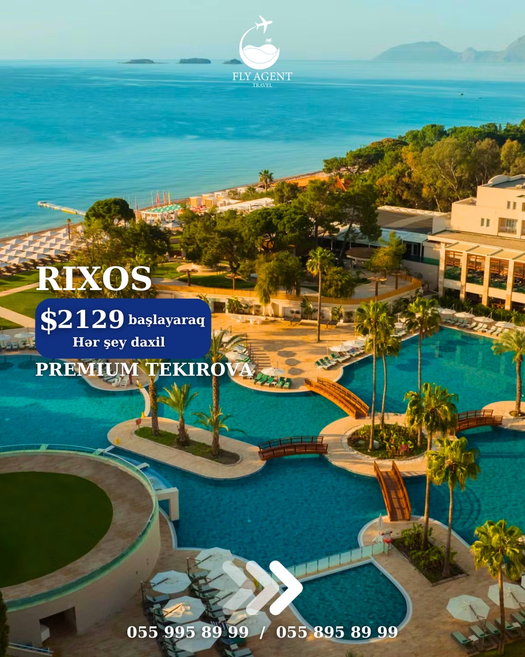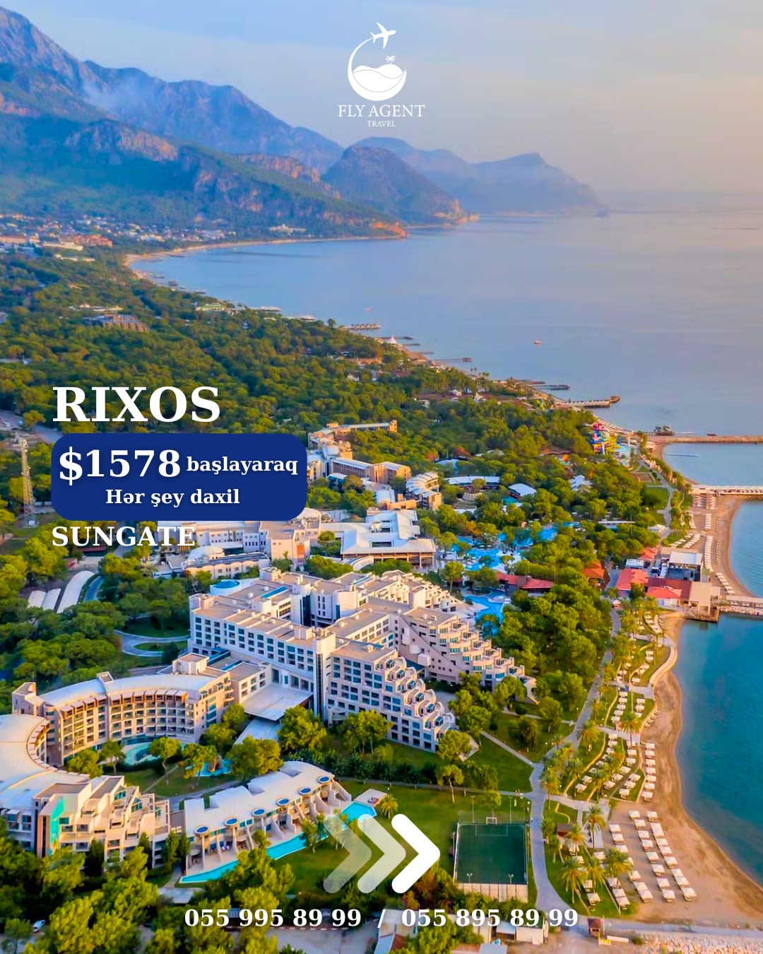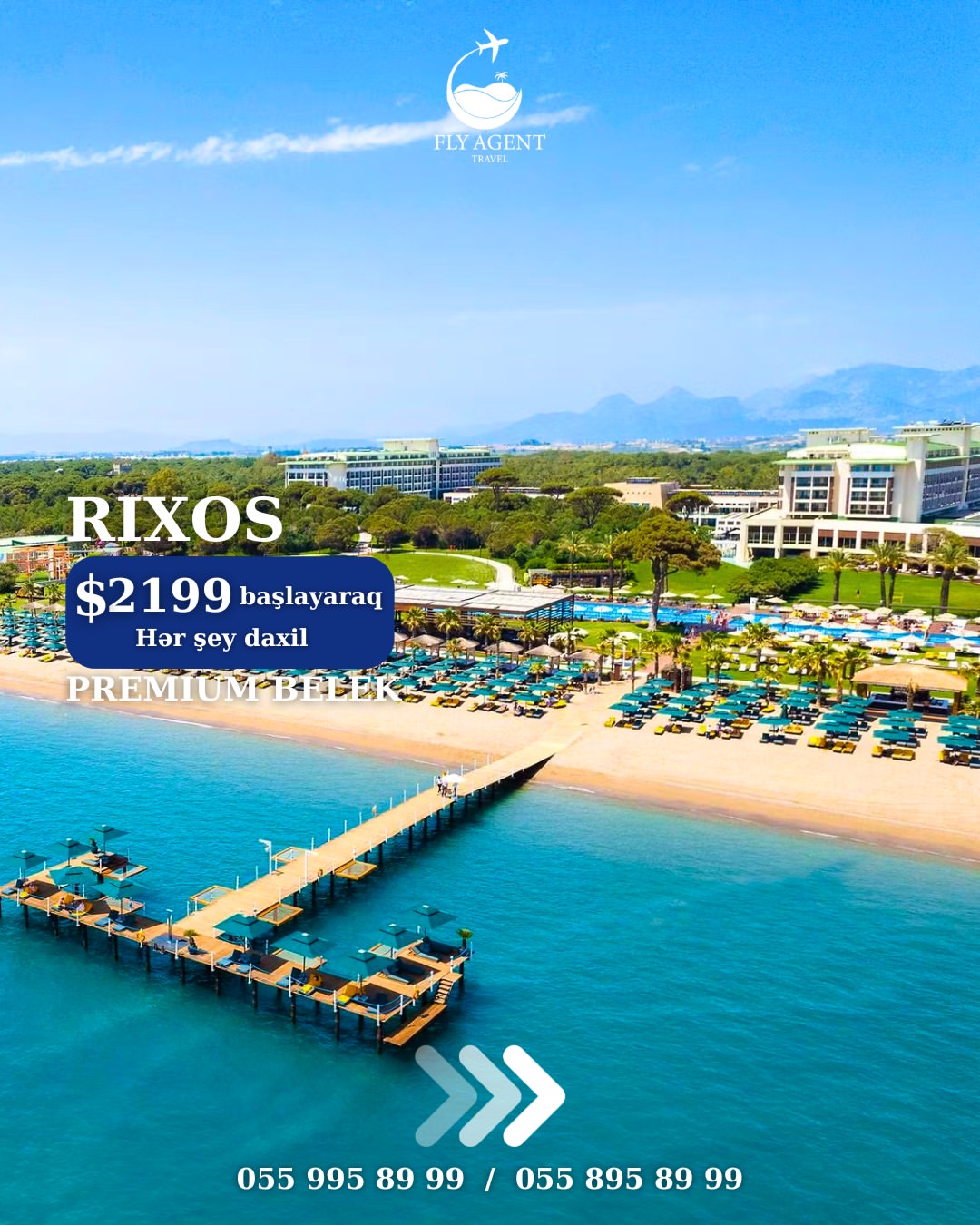 Qiymətə daxildir: 🛫 Aviabilet (Gediş-dönüş) 🏩 Oteldə gecələmə (5 gecə 6 gün) 🧳 Baqaj 🍽 Qidalanma (UAİ) 🚗 Transfer ✅ Sığorta 📅 19.06.2026—24.06.2026 🏨Otel: RIXOS DOWNTOWN 5* 1386 usd 🏨Otel: RIXOS PARK BELEK 5* 1472 usd 🏨Otel: RIXOS SUNGATE 5* 1578 usd 🏨Otel: RIXOS PREMIUM GOCEK (13+) 5* 1996 usd 🏨Otel: RIXOS PREMIUM TEKIROVA 5* 2129 usd 🏨Otel: RIXOS PREMIUM BELEK 5* 2199 usd 🏨Otel: RIXOS PREMIUM BODRUM 5* 2376 usd 🏨Otel: CLUB PRIVE BY RIXOS BELEK 5* 6400 usd 🏨Otel: CLUB PRIVE BY RIXOS GOCEK 5* 6670 usd ❗Qeyd: Qiymət 2 nəfərlik otaqda 1 nəfər üçün hesablanmışdır! ❗Rahat ödəniş şərtləri ilə alışınız daha da sərfəli olacaq: ✅ 30% ilkin ödəniş, qalanı isə 20 gün qalanadək faizsiz hissə-hissə; ✅ BirKart ilə 18 ayadək; ✅ Tək şəxsiyyət vəsiqəsi ilə 24 ayadək kreditlə. ❗Diqqət: ✅ Ödənişlər yalnız manatla, günün məzənnəsinə uyğun qəbul edilir. ✅ Bu qiymət paylaşımın edildiyi anda keçərlidir. ✅ Qiymət tarixdən asılı olaraq dəyişə bilər, qiymətlər dinamikdir.